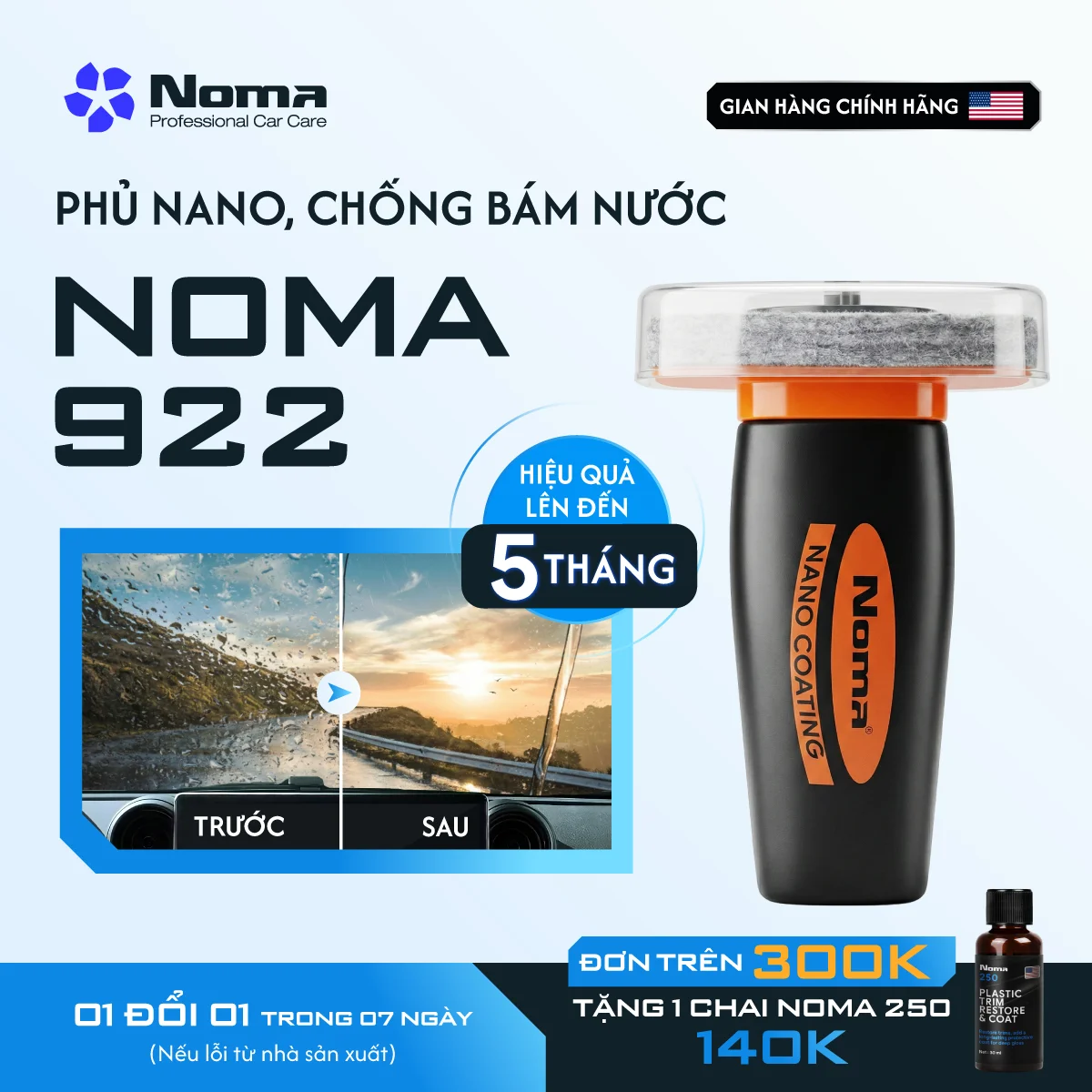 Tên sản phẩm: Dung dịch phủ Nano kính – NOMA 922Thương hiệu: Mỹ